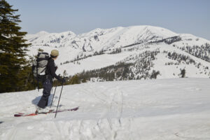 シールを外して山頂直下を滑走。そしてすぐにシールON。トレースを辿り、最後にスズヶ峰からのツリーランで再び滑走。最後はヘッデンで日没ぎりぎりに幕営地に戻った。