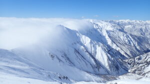 滝沢リッジは2023年にK澤さん、雪稜会の同い年同じ月生まれのクライマー 山ちゃんと完登しており、雪が少ない為滝沢右稜は候補にあがらず、上部城塞の雪が安定し、国境稜線のブロックが少ないと見込んで3ルンぜに狙いを定めた。