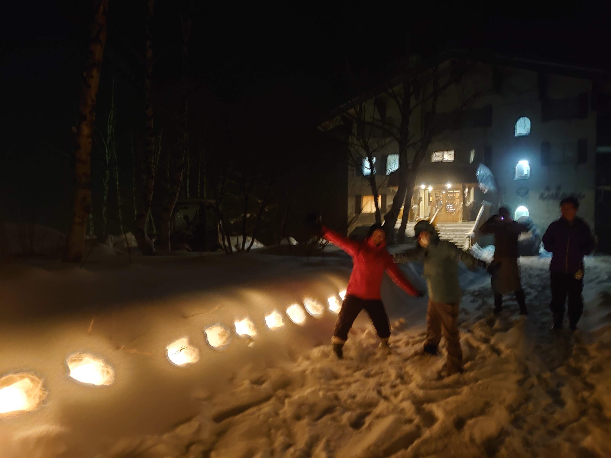 食後は外に出てキャンドルと花火。ビーコン捜索練習の時に、KYさんが何やら雪を掘っていたのはこれか️雪が舞う中、キャンドルに照らされた灯りがほんわかしてて綺麗。雪降る中での花火は情緒あり、と云うか初めてだ。この時期何処で花火売っていたんだろう。KYさんは、かなりのエンターテナーひとしきりキャンドルと花火を楽しんだ後は宴会、いつもの事だが日本酒が美味しい。調子にのって飲みすぎると明日に響くと思いつつ飲んでしまう。暖かいベッドで寝れる有難さを噛み締めながら就寝。