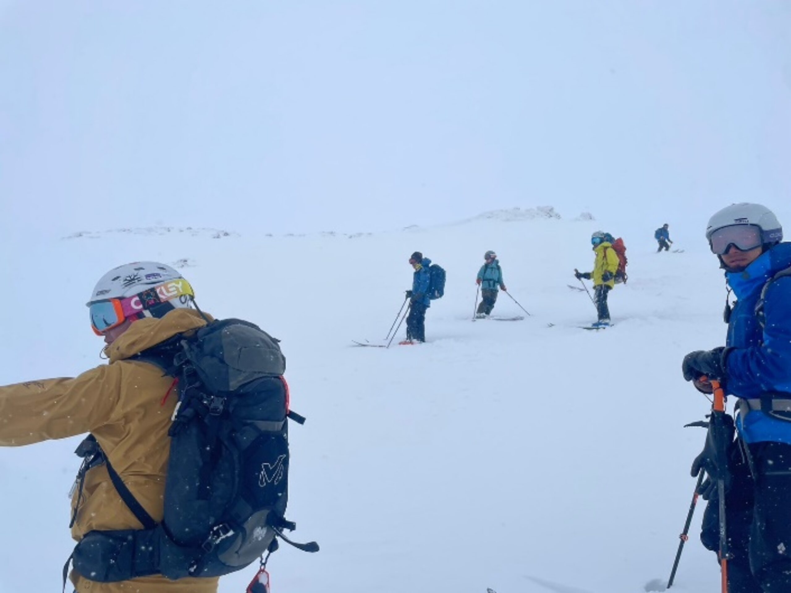 “ここは崖があるから駄目だ!左側に回って!”との誘導を受けてネクスト先行者が更にコース下見を行い、パーティーを精密誘導するチームワークを繰り返して安全下山する。