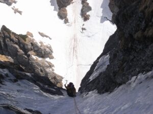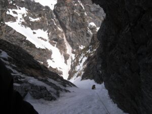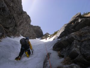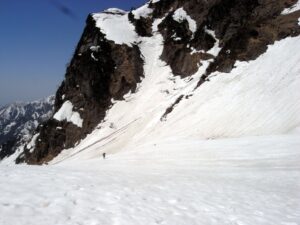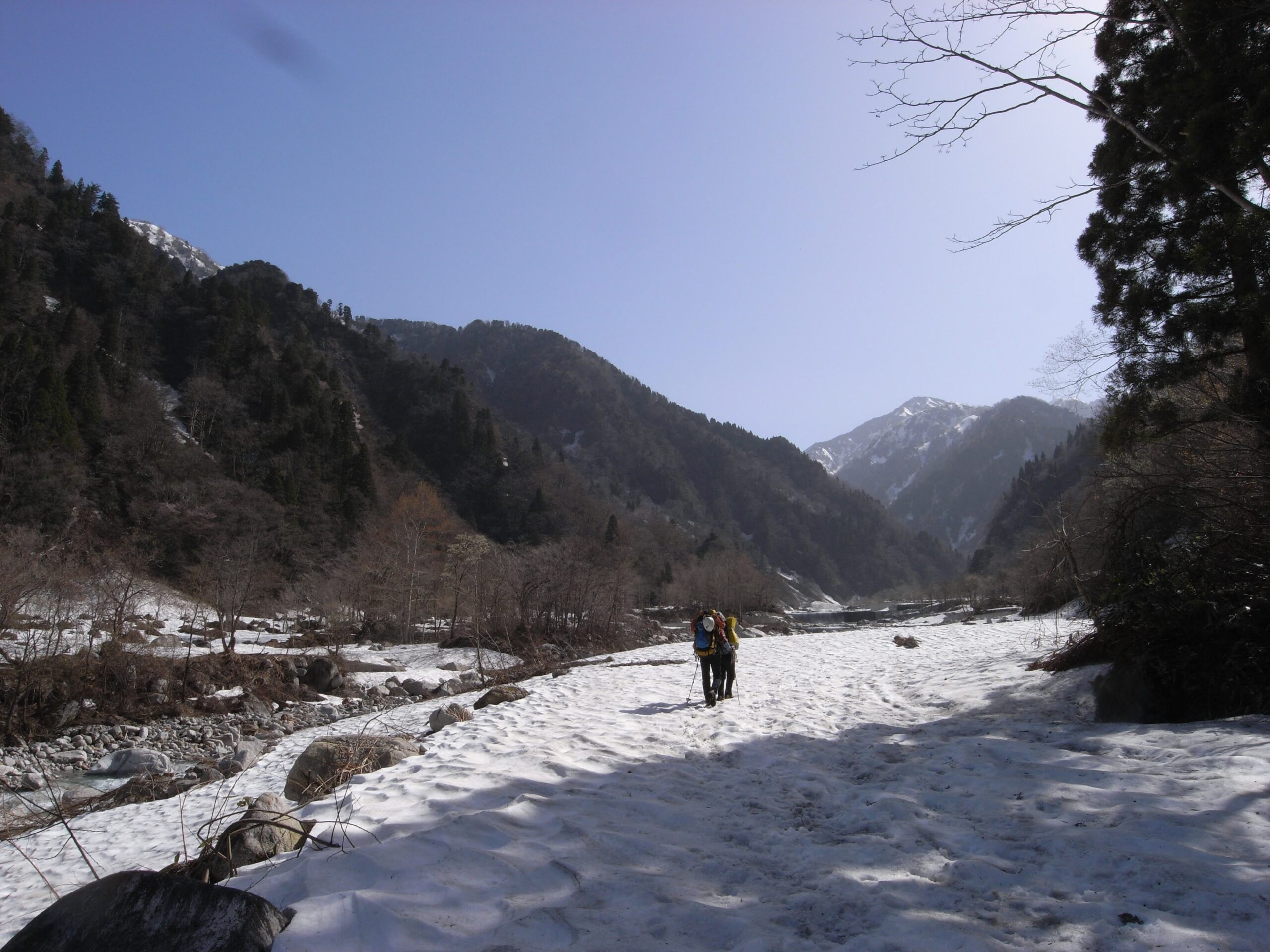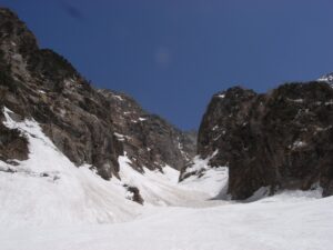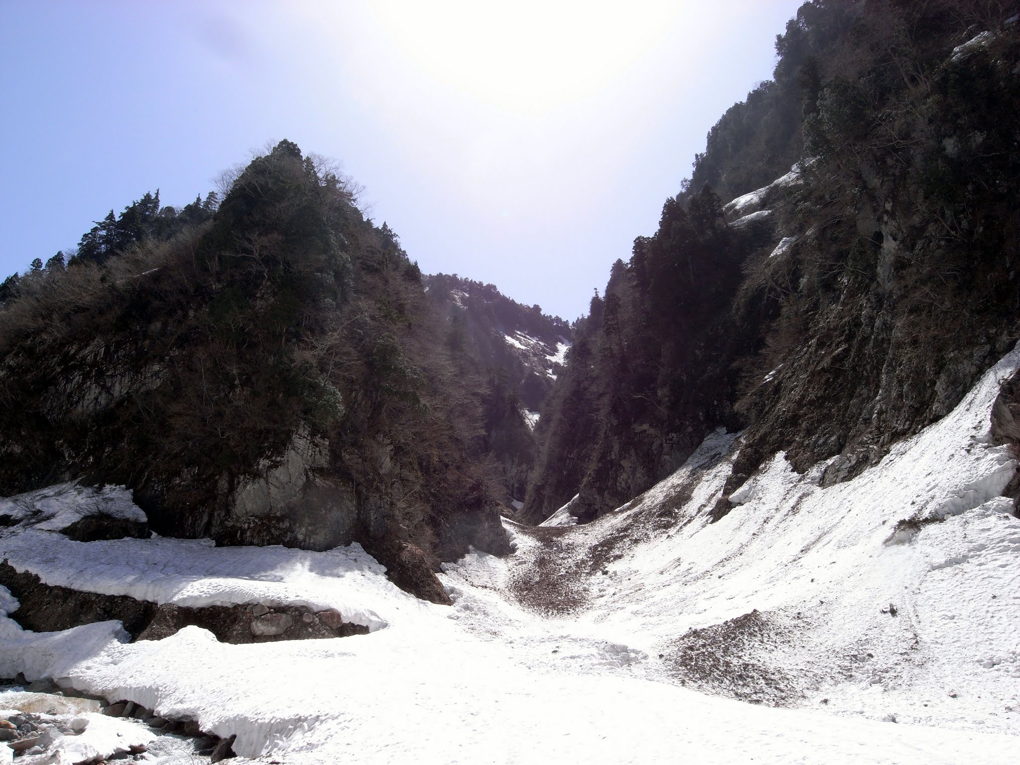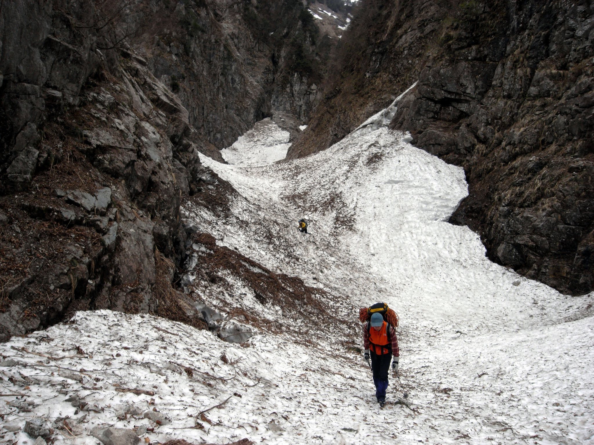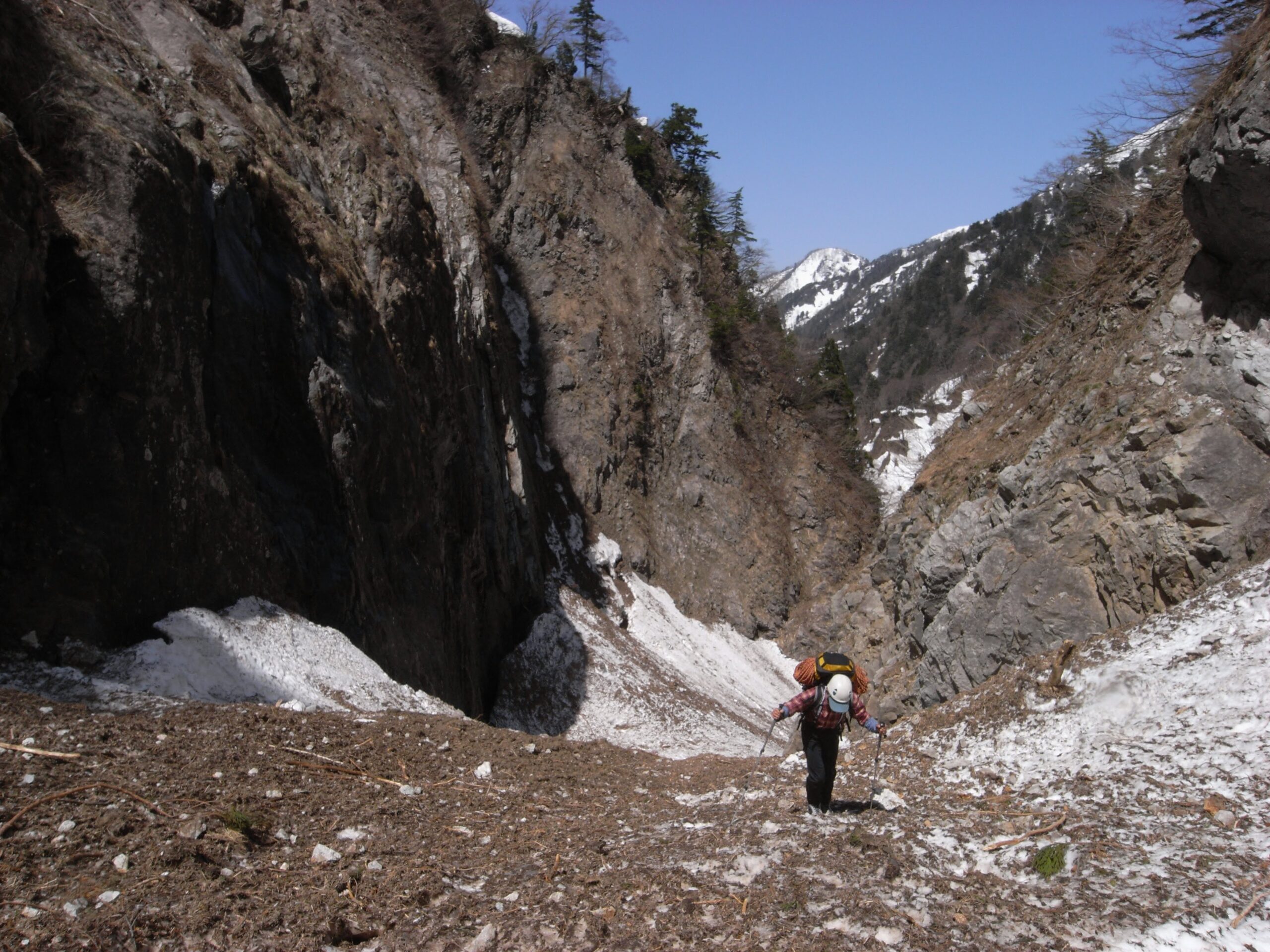 雪が緩む前に池ノ谷ゴルジュを通過できた。