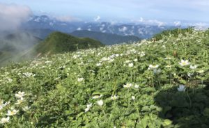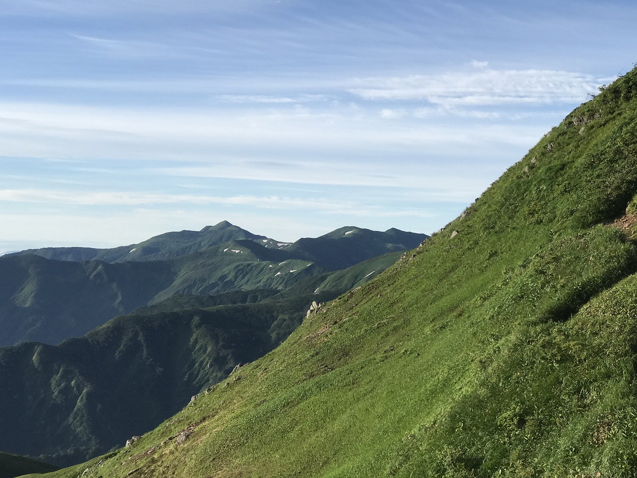 梅雨の間隙を塗って青空の朝日連峰を楽しみました。みずみずしい緑の中、全山お花畑状態の山々と何故か多くの友人とすれ違う面白い山行でした。そして予定通り善六の池集中ができました。交差縦走はなかなか良いですね!