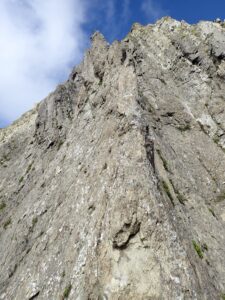 ちなみに残置ハーケンはしっかり決まっているものもあれば、バサッと岩ごと抜けるものもある。